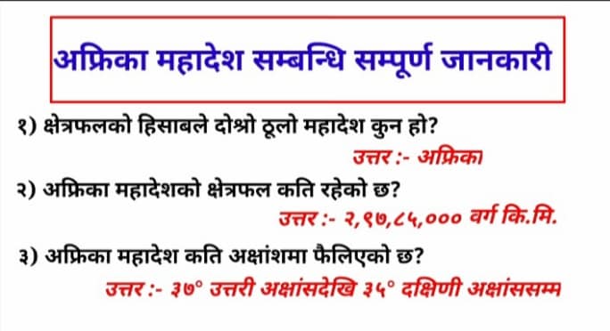 विश्वको भूगोल सम्बन्धि महत्त्वपूर्ण जानकारी